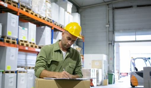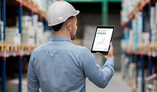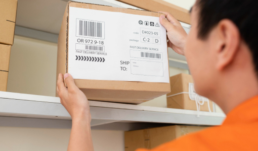 System auto-prints a barcode/QR label with job number, part number, quantity.